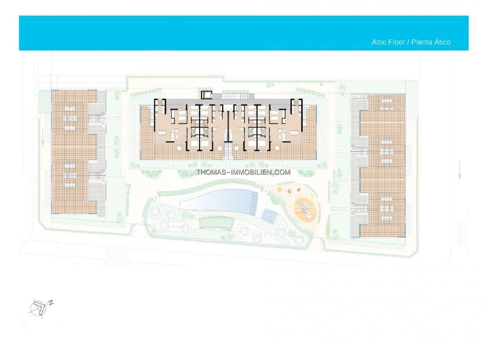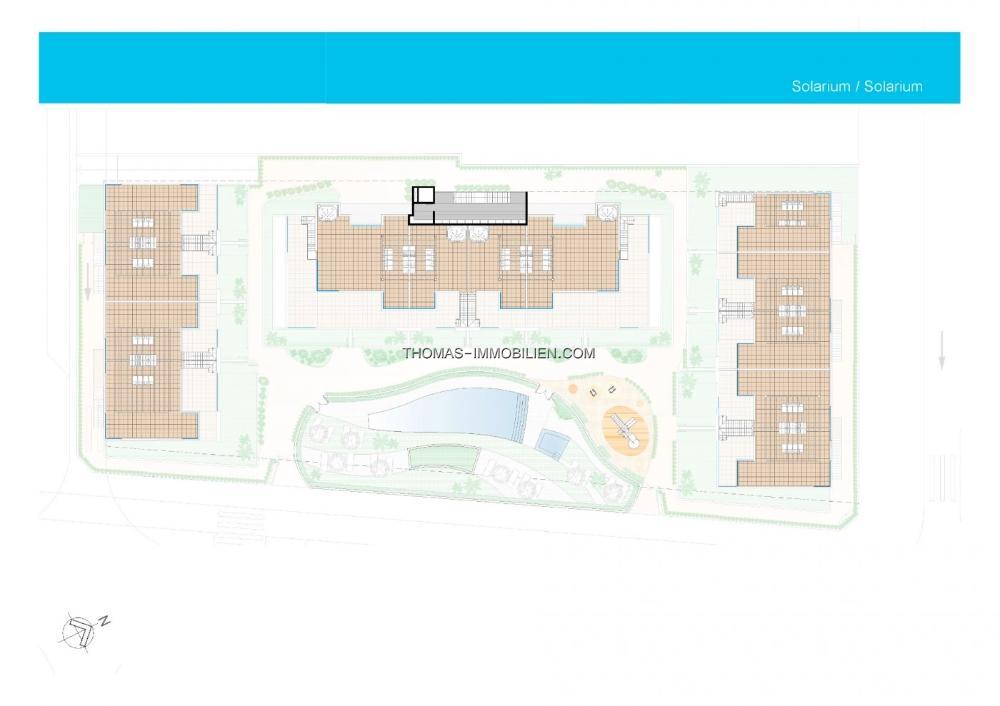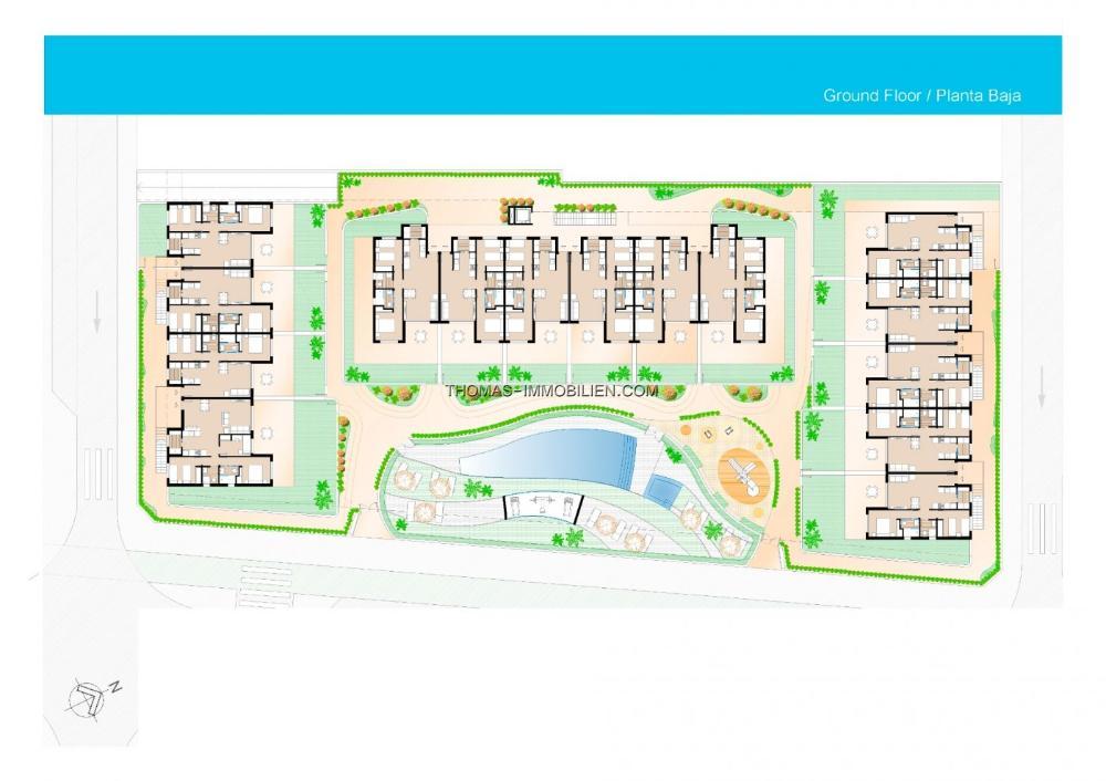 Die neu gebaute Wohnanlage im modernen Stil besteht aus Bungalows, Apartments und Penthäusern und verfügt über einen großen Gemeinschaftsgarten mit Pool, Fitnessraum und Spielplatz für die Kinder.