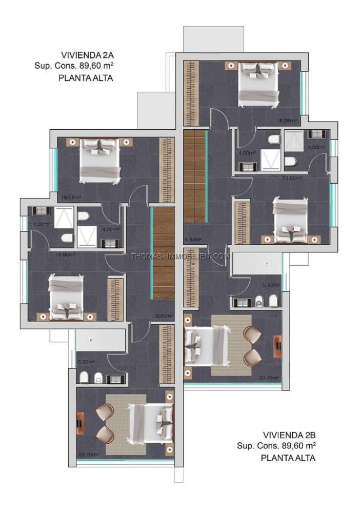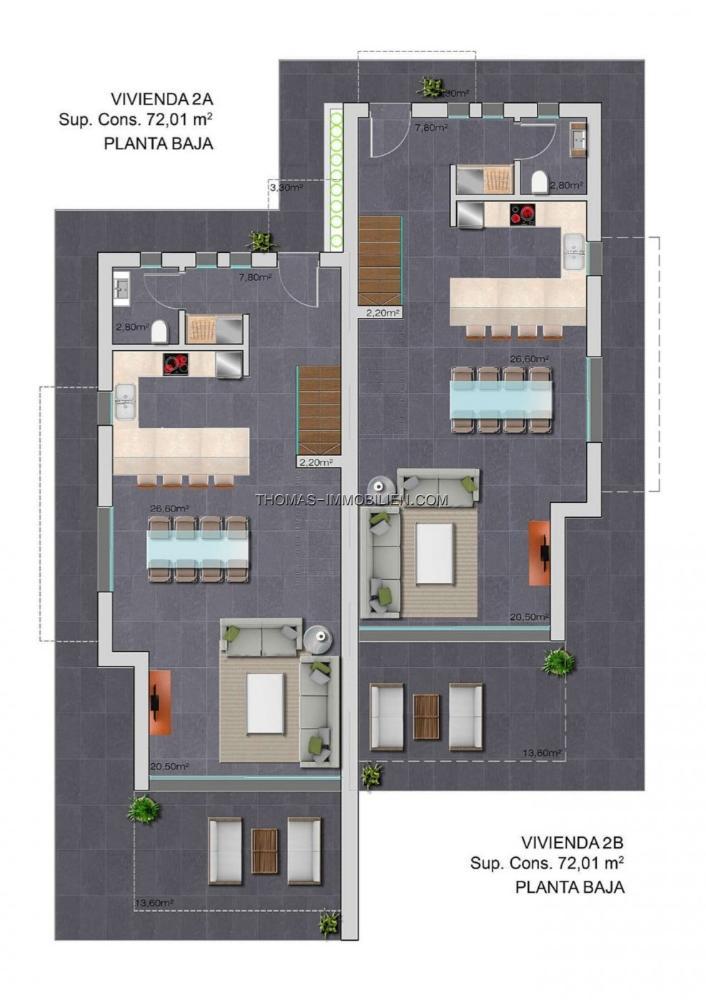 Neubau-Luxus-Komplex, bestehend aus 6 Doppelhaushälften mit privatem Pool und einem Grundstück von 500 m2 für jedes Haus.