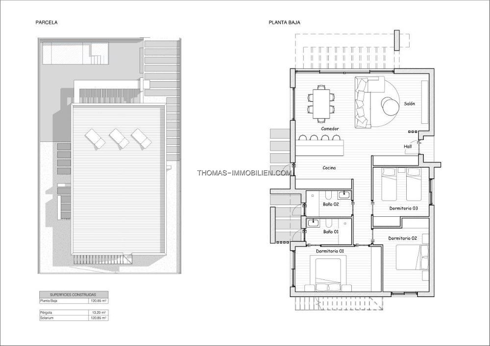 Neubau einer Wohnanlage mit 5 freistehenden Villen (3 verschiedene Typen A, B und C) in San Miguel de Salinas.