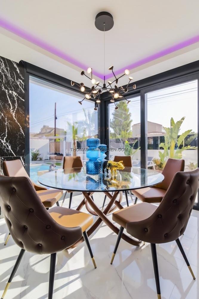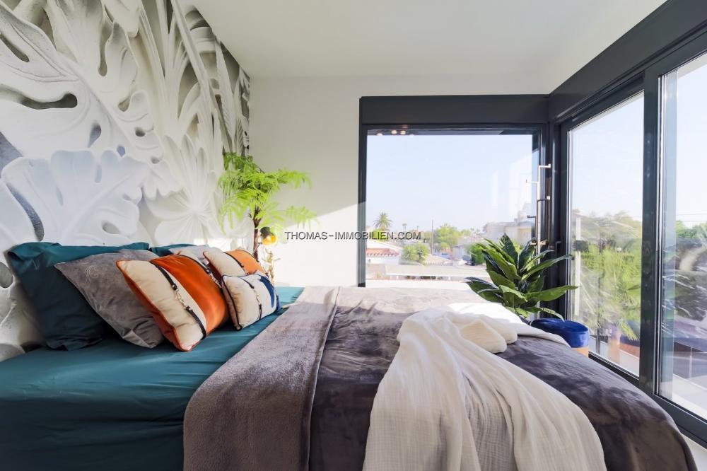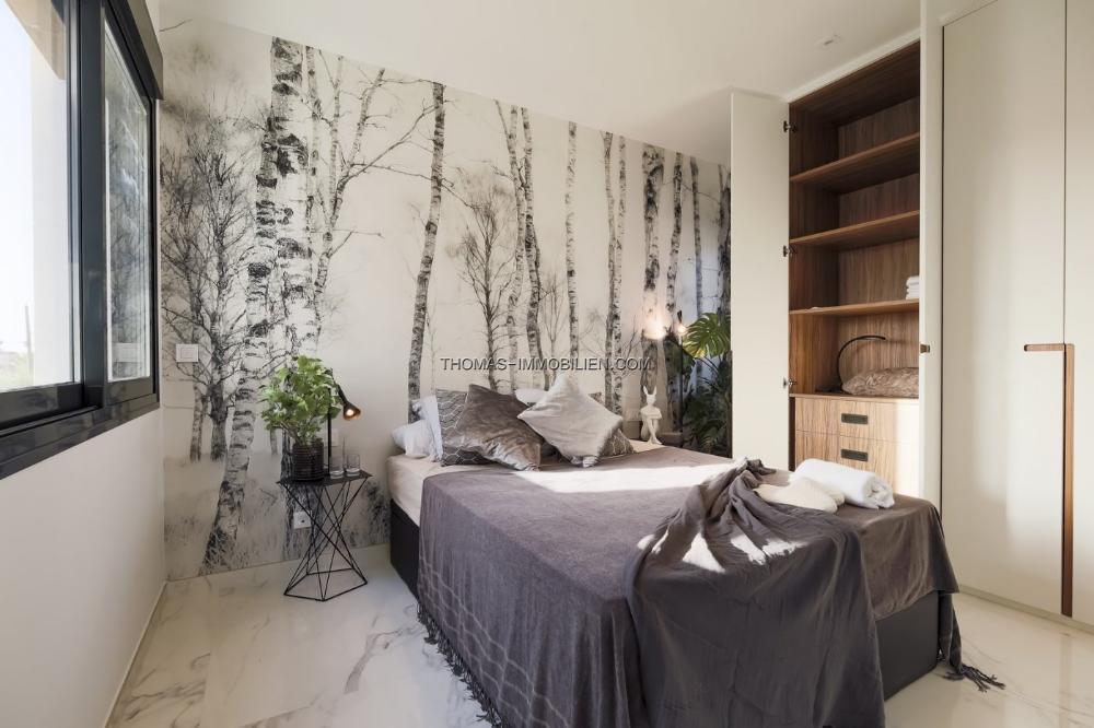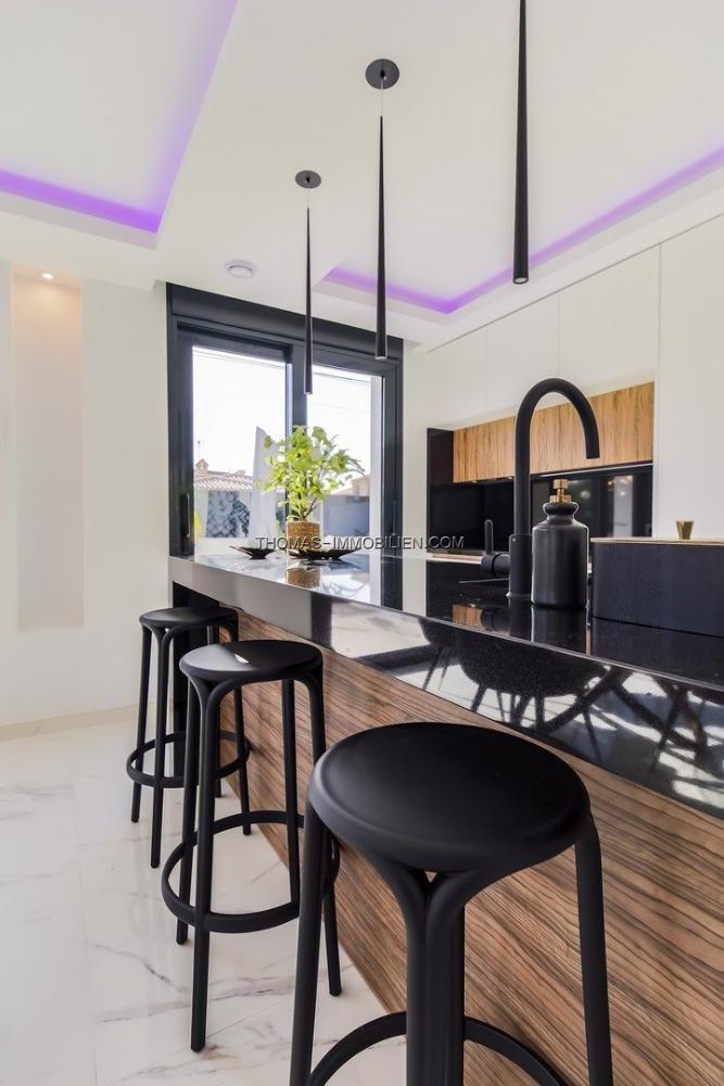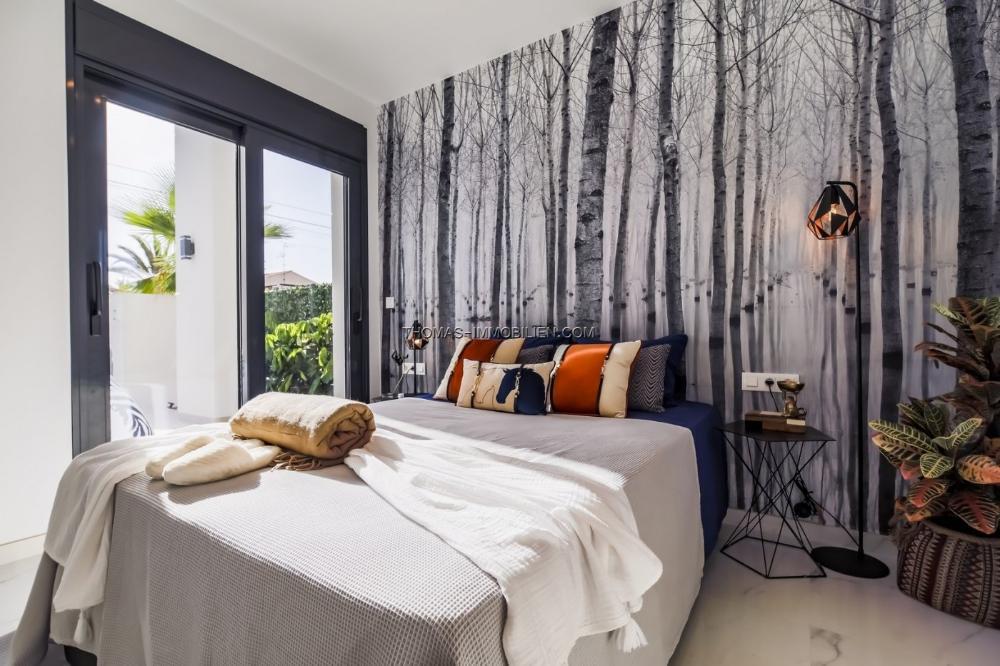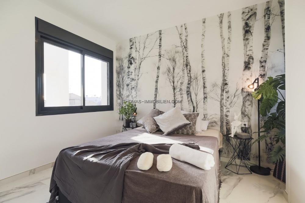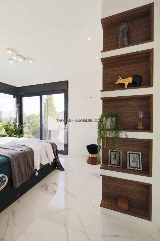 Die Villa besteht aus einem Erdgeschoss mit einem sehr geräumigen und offenen Wohn-Esszimmer mit viel Licht, einer Designerküche mit Insel, einem Schlafzimmer mit Doppelbett und einem kompletten Badezimmer. Außerdem gibt es einen Abstellraum, in dem sich das Domotik-Bedienfeld befindet.