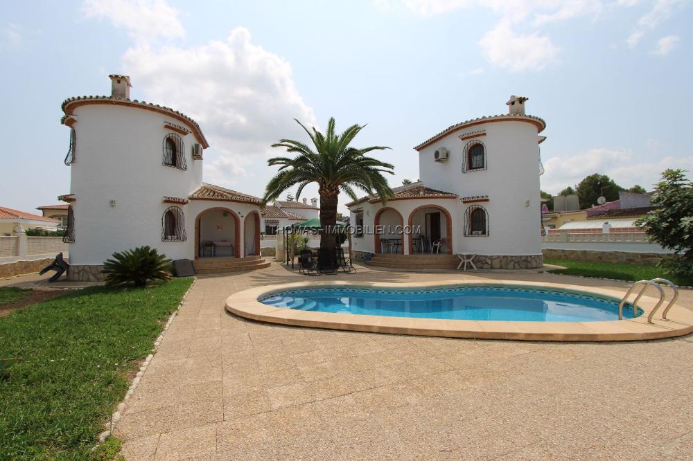 Zwei Villen zum Verkauf in Els Poblets. Es gibt zwei Villen auf einem Grundstück von 751,00m2 mit einem gemeinsamen Pool. Die beiden Villen sind gleich und wie folgt aufgeteilt, das Erdgeschoss besteht aus Wohn-Esszimmer, offener Küche, einem Badezimmer und 2 Schlafzimmern mit Einbauschränken. Im Obergeschoss befindet sich ein weiteres Schlafzimmer mit Bad. In beiden Häusern gibt es auch Extras wie Klimaanlage, Pelletofen, Barbecue, TV/Sat, Doppelverglasung, Internet und Parkplätze für mehrere Autos. Die Unterkunft befindet sich ganz in der Nähe aller Annehmlichkeiten wie Supermarkt und Restaurants. Die nächsten Strände sind ca. 800m entfernt. Das größte Einkaufszentrum der Gegend befindet sich in Ondara, weniger als 10 Minuten mit dem Auto entfernt, sowie die Autobahn nach Valencia (1 Stunde) und Alicante (1 Stunde).