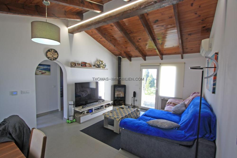 Zum Verkauf steht diese gemütliche Doppelhaushälfte mit eigenem Grundstück (369 m2) und kleinem, eigenständigen Studio. Marquesa IV-Gebiet, das ganze Jahr über sonnig und mit herrlichem Blick auf das Meer und den Golf von Valencia. Privates Eckgrundstück mit automatischem Zufahrtstor und Parkplatz für 2 Fahrzeuge. Wohnzimmer mit Kamin, separate Küche, hohe Decken, 1 großes Schlafzimmer (ursprünglich zwei) mit elektrischem Kamin, großer Wandschrank und 1 Badezimmer mit italienischer Dusche. Vom Wohnzimmer aus haben Sie Zugang zu einer offenen Terrasse mit Meerblick, einem Grill und einem Whirlpool. Sie können zu einer weiteren Terrasse mit Abstellraum hinuntergehen oder zu einer herrlichen Sonnenterrasse mit Blick auf das Meer und die Küste hinaufgehen. Hinter dem Gebäude und mit separatem Eingang befindet sich ein kleines Studio mit 1 Schlafzimmer, 1 Badezimmer und 1 Küche. Im Jahr 2023 komplett renoviert mit den besten Materialien: PVC-Fenster mit Sicherheitsglas, Fußbodenheizung, Steinzeug, Laminat, Holzkamin und ein weiterer Elektrokamin, individuelle Klimaanlage, LED-Leuchten, möbliert und mit Geräten verkauft usw. Ruhige, ganzjährig bewohnte Wohngegend und nur 3 km von Dénia und seinen Stränden entfernt.