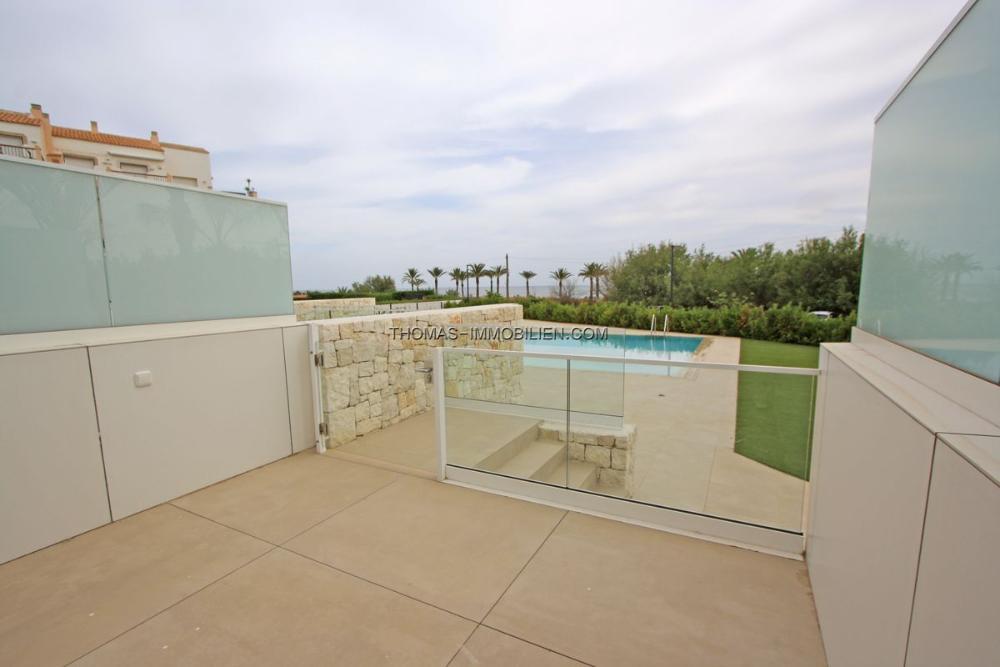 Luxuswohnung in neu errichteter Bauweise zum Verkauf, die in erster Strandlage in Denia gelegen ist. Erdgeschoss. IInsgesamt verfügt es über eine bebaute Fläche von ca. 137 m2. Exklusive Luxusresidenz verteilt auf 2 Schlafzimmer, 2 Badezimmer (eines davon en-suite im Hauptschlafzimmer), einen geräumigen offenen Wohn-/Ess-/Küchenbereich und einen Waschbereich. Die Schlafzimmer haben direkten Zugang zu einer privaten, unüberdachten Terrasse, und das Wohnzimmer hat ebenfalls Zugang zu einer weiteren geräumigen überdachten und unüberdachten Terrasse. Im Preis ist ein externer Parkplatz enthalten. Diese Luxusresidenz in erster Strandlage wurde für maximalen Komfort und Eleganz entworfen, und wo die Großzügigkeit der Räume und die Pracht der Terrassen das Konzept von Eleganz und Wohlbefinden neu definieren. Sie bietet auch direkten Zugang zum Meer und sorgt für ein unvergleichliches Erlebnis von Gelassenheit und Unterscheidung. Die Wohnungen sind mit erstklassigen Materialien ausgestattet: Einbauschränke, Fußbodenheizung und zentrale Klimaanlage. Die Küche, mit Designer-Möbeln und -Schränken, ist darauf ausgelegt, dir maximalen Komfort und Stil zu bieten. Sie liegt nur wenige Schritte vom Stadtzentrum und allen Dienstleistungen entfernt. Optionale Abstellräume ab 19.000 € oder geschlossene Einzelgaragen mit Ladegerät für Elektroautos zu 69.000 €.
