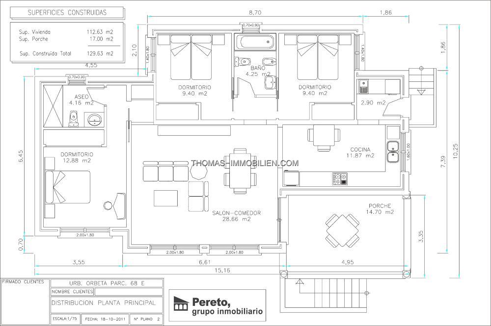 Chalet modernen Designs gelegen in Orba, Costa Blanca, Provinz Alicante, Espagne. Es handelt sich um ein Chalet mit geraden Linien und breiten Fenstern und Fensterfronten, alles das auf einer Parzelle mit 860 m2 und blick auf das Tal. Das Haus hat 129,63 m2 und besteht aus Wohn-Esszimmer, Küche, Hauswirtschaftsraum mit Außenzugang, überdachter Porche, 3 Schlafzimmern, eines davon mit Bad en suite, und ein separates Bad für die anderen Zimmer. Im Preis ist auch enthalten: ein Pool mit 8 x 4 m mit Innenbeleuchtung und gemauerter Innentreppe, Außenterrasse mit ca. 35 m2 mit umlaufender Balustrade aus Aluminium und Glas, mit Naturstein gepflastertem Parkplatz (von ca. 135 m2), Zugang von der Straße zum Haus, Schiebetor zur Autoeinfahrt, Anschlüsse für Wasser und Strom und natürlich dem Stil des Hauses entsprechende hohe Bauqualität. Inklusive Bauprojekt, Genehmigung, 10-Jahres-Garantie und alle weiteren Unterlagen zum Hausbau. Orba ist ein hübsches Dorf im Herzen der Costa Blanca nur 20 Minuten von den Sandstränden, eine Stunde von den Flughäfen Alicante und Valencia und nur 15 Minuten vom größten Einkaufszentrum in der Umgebung entfernt.
