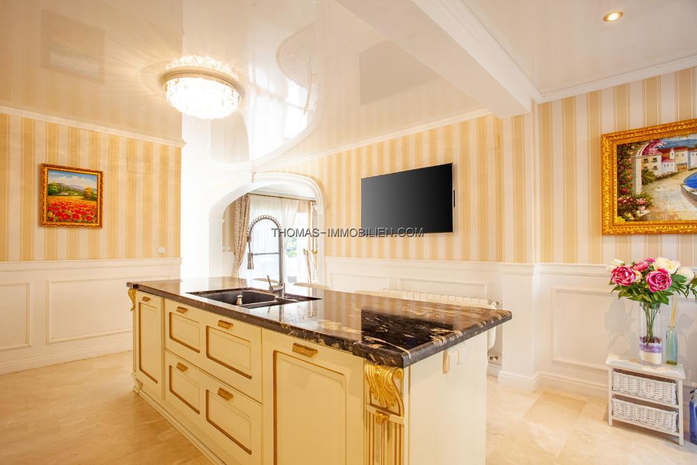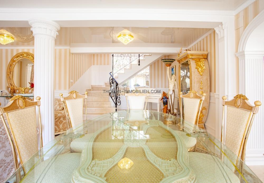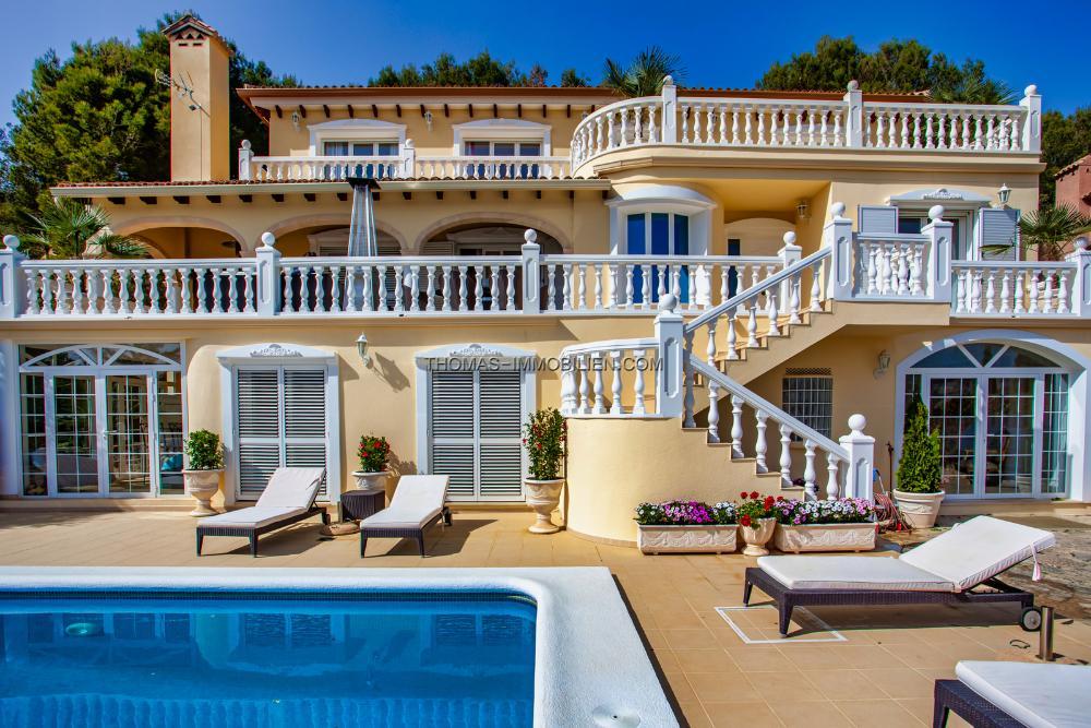 Diese Unique Villa wird Sie verblüffen. Die Ansichten sind offen und schön. Sie befindet sich an einem sonnigen Ort. Die Qualität des Hauses ist die beste, die Sie finden können. Rund um das Haus und besonders an der Vorderseite, wo die unverbauten Aussichten sind, finden Sie einen Platz zum Entspannen. Es gibt mehrere Terrassen, einen Grillplatz und einen großen Innenhof auf der Rückseite. Das Haus ist auf drei Etagen verteilt. Im Erdgeschoss finden wir eine Halle und einen Vorraum, eine interne Treppe, um die oberen Etagen zu erreichen, zwei Doppelschlafzimmer, eines davon mit en-suite Badezimmer, ein Duschbad und eine überdachte Terrasse. Auf der ersten Etage haben wir eine Eingangsveranda und einen Flur, die offene Küche, den Wohn- und Essbereich, ein Doppelschlafzimmer mit en-suite Badezimmer, ein WC, eine Speisekammer, Waschküche, überdachte und offene Terrassen. Die zweite Etage erreichen wir wieder über eine Innentreppe. Hier finden wir ein Vestibül, drei Doppelschlafzimmer mit drei en-suite Badezimmern, ein Ankleidezimmer und eine sehr große offene Terrasse. Der Pool und die Garage für zwei Autos befinden sich im Erdgeschoss und bieten einen fantastischen Ausblick. Alle Räume sind mit großen Fenstern ausgestattet, die viel natürliches Licht und eine tolle offene Aussicht bieten.