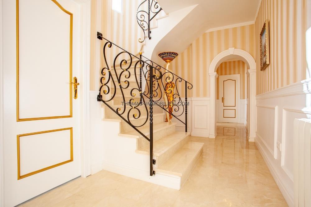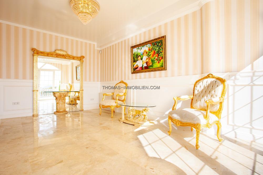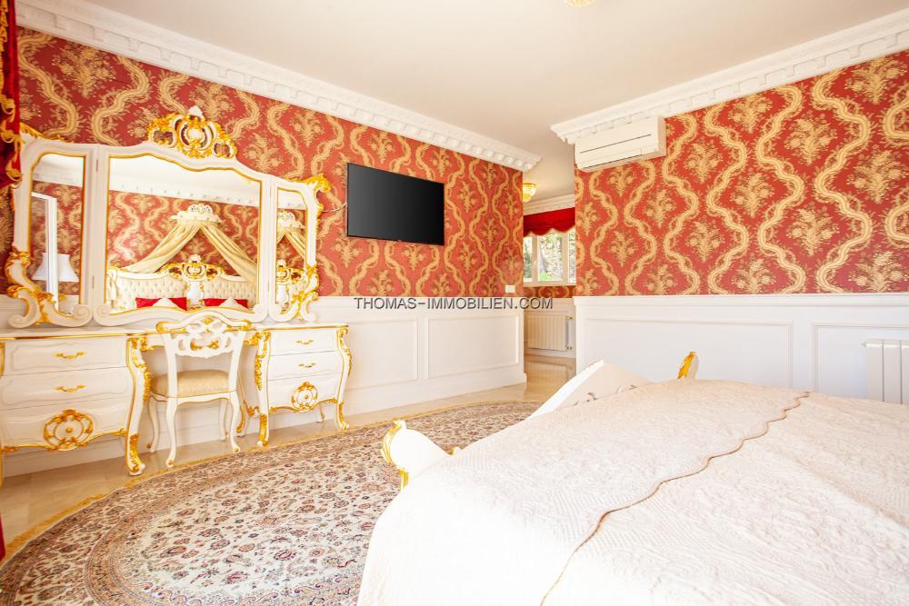 Gas-Zentralheizung, Klimaanlage warm/kalt in allen Räumen, 8x4 Pool, Garage für zwei Fahrzeuge, Alarmanlage mit Kameras, Warmwasser aus elektrischem Boiler, Kamin, Marmorboden, offener Blick, Top-Qualität, Luxus, Holz- und PVC-verglaste Türen, doppelt verglaste Sicherheitsglasfenster, 6 Schlafzimmer, 6 Bäder, Gäste-WC