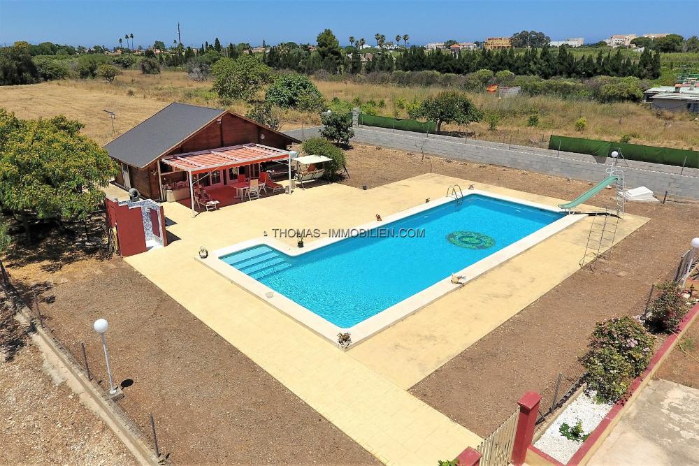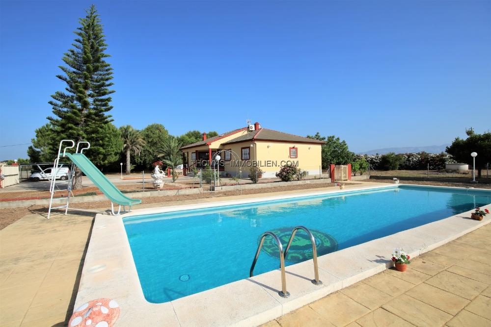 Dieses einstöckige Haus gliedert sich in 4 Doppelzimmer, 1 Duschbad und 1 Badezimmer auf. Beim Eintreten in den Flur befinden sich die Schlafzimmer auf der rechten Seite, die eingerichtete unabhängige Küche mit Waschküche auf der linken Seite und das große Wohnzimmer mit Kamin direkt an der Vorderseite. Die Küche ist groß genug mit einem Essbereich, Zugang zur überdachten Terrasse durch die Waschküche. Die Wohnstube hat viel Platz und wenn Sie die Glastüren öffnen, haben Sie Zugang zur geschlossenen Terrasse mit Klimaanlage. Von hier aus können Sie nach draußen gehen und auf eine weitere offene Terrasse gelangen. Von innen, von der Halle aus, kann man bis zum Dachboden gehen, der zusätzlichen Platz für Spielzimmer, Büro, Gästeunterbringung und Lager anbietet. Wenn Sie nach unten gehen, haben Sie auch Zutritt zur Garage mit viel Platz für mehrere PKW´ s und viel Stauraum. Um das Grundstück zu betreten, durchfahren Sie ein elektrisches Tor und dann ein zweites, um zu einem offenen Bereich mit einem Carport für 3 Fahrzeuge und dem Garagentor zur Tiefgarage zu gelangen. Der Poolbereich, neben dem Haupthaus, hat eine große Terrasse, Grill und eine große geschlossene Komplettküche mit Essbereich, einem Duschraum und Abstellraum. Dank der großen Markisen können Sie die Außenterrasse im Schatten genießen. Das Haus ist geräumig, der Pool ist groß, es hat eine wunderbare Außen Küche mit Terrasse, um das Leben im Freien zu genießen, reichlich Parkplätze sind vorhanden. Es ist einzigartig, kommen Sie und sehen Sie es sich selbst an.