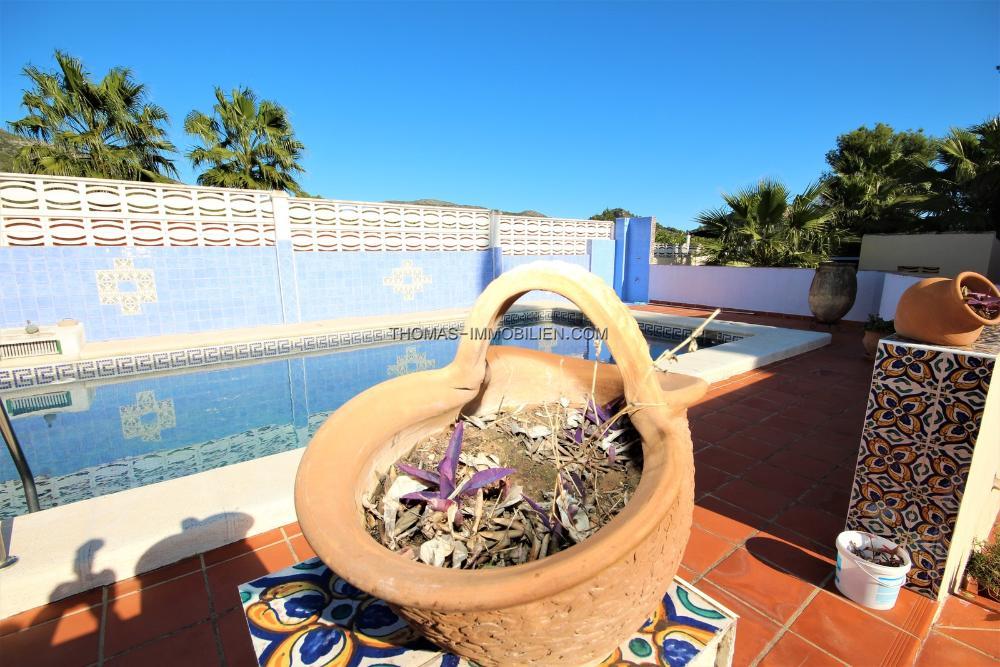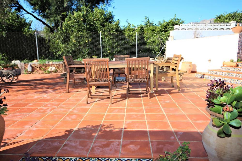 Hiermit bieten wir Ihnen eine der wenigen, noch originalgetreu renovierten Fincas (ca.160 Jahre) an. Sie liegt in einer eigentümlichen Landschaft zwischen Bergen und dem Mittelmeer. Das mit Bedacht auf die alten Gebäudesubstanz und den Charakter der Finca zu bewahren, wurden teilweise die Original Fenster, Türen und Tore aufwendig restauriert oder durch gleichalte aus dem Antikhandel ersetzt. Auch das Dach wurde teilweise erneuert und unter Verwendung der alten Ziegel neu aufgebaut. Die 40cm dicken Außenmauern, bieten in den heißen Sommermonaten eine willkommene Abkühlung im Haus inneren. Viele Originalteile der damaligen Zeit sind noch vorhanden wie z.B. Bodenfliesen, über 3 Meter hohe Holztüren, Küchenvitrinen etc. Der ursprüngliche Patio (zur damaligen Zeit wurde dieser für die Tierhaltung genutzt) ist zu einem sehr einladenden - mit arabischen Fliesen ausgestattet – Innenhof ausgebaut worden. In der massiven Außenwand des Patios ist ein alter funktionsfähiger Backofen (original) eingemauert. Die Finca ist in Mitten von Orangenplantagen gelegen und verfügt daher selbst über Orangenbäume und Mandel-, Aprikosen-,Oliven- und Feigenbäume. Gerade zur Blütezeit legt sich ein herrlicher Duft von frischen Orangen (Azahar-Blüte) etc.über die gesamte Gegend. Der Parkähnliche Garten ist für eine ganzjährige Blüte angelegt und mit vielen Pflanzen des Mittelmeerraums bepflanzt. Der Garten verfügt über eine komplette Bewässerungsanlage. Die Finca verfügt über 5 Schlafzimmer, 3 Bader, großes Wohnzimmer mit offenem Kamin, offene Küche verbunden mit dem großen Esszimmer und direktem Zugang zu Patio. Die Finca bietet außerdem verschiedene Bereiche als Ruhezonen an. Im Eingangsbereich hat man die Möglichkeit sich auf der großen Terrasse mit Blick auf den Garten zu entspannen. Auf der großen Terrasse im Schwimmbadbereich kann man wunderbar den Sonnenuntergang genießen und im Hauptschlafzimmer bietet die kleine Terrasse einen freien rundum Blick auf die Bergkette des Mondúber und die umliegenden Plantagen.