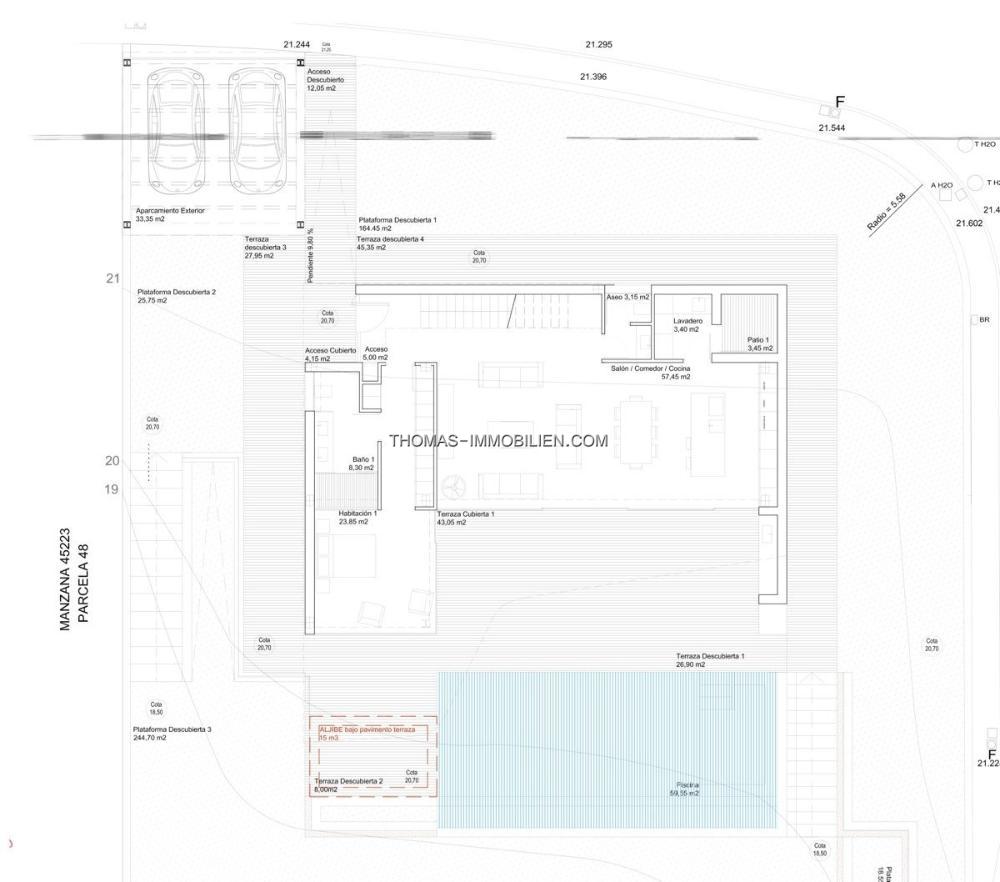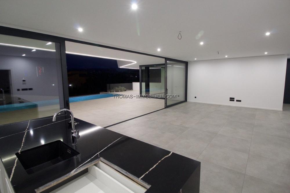 Auf der unteren Ebene befindet sich Ihr geräumiges Wohn- / Esszimmer, verbunden mit der Küche mit einer zentralen Insel, alle offen zur Terrasse mit Pool, Garten und Grillplatz. Auf dieser Ebene finden Sie 1 Schlafzimmer mit eigenem Ankleideraum und Badezimmer.