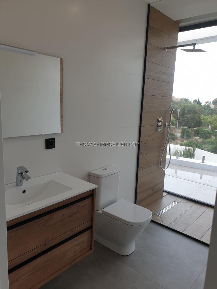 Auf der oberen Ebene finden wir 3 Schlafzimmer mit Bad en Suite mit Zugang zur überdachten Terrasse.
