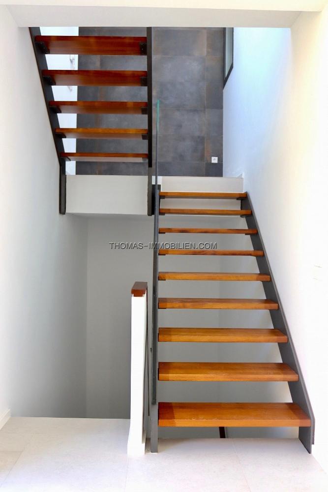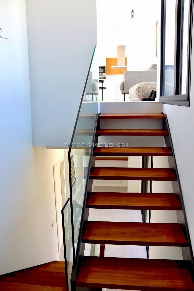 Die erste Etage von 84,88 m2 verfügt über ein Wohnzimmer mit offener und ausgestatteter Küche, ein WC und eine große überdachte Terrasse (14,35 m2) sowie eine offene Terrasse (48,50 m2).