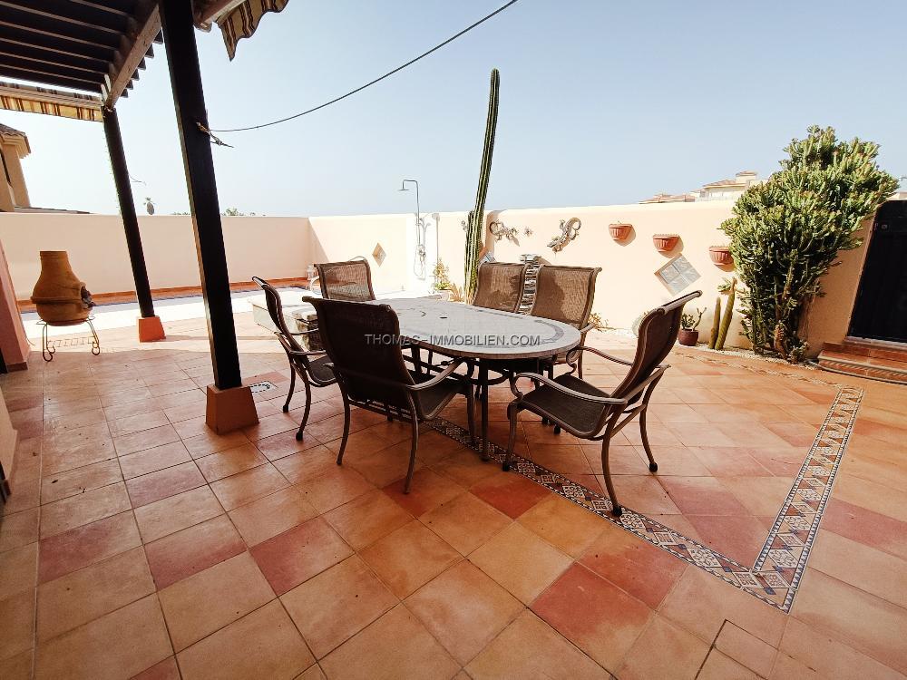 Im obersten Stockwerk des Anwesens befindet sich eine große Dachterrasse, die den ganzen Tag über Sonne und Blick auf das Meer bietet. Einige Eigentümer haben die Dachterrasse weiter ausgebaut und mit einer Pergola versehen, die Schatten spendet.
