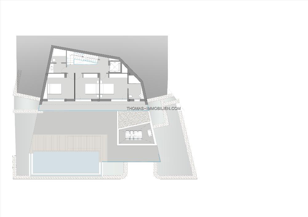 Die Villa besteht aus vier Etagen, die durch eine Innentreppe und einen Aufzug miteinander verbunden sind, um maximalen Komfort zu gewährleisten. Sie betreten die Villa auf der oberen Etage. Hier befindet sich die Master-Suite mit einem luxuriösen begehbaren Kleiderschrank, einem geräumigen Bad und einer privaten Terrasse mit herrlicher Aussicht. In der ersten Etage befinden sich drei weitere Schlafzimmer. Eines davon hat ein eigenes Bad, während sich die beiden anderen Schlafzimmer ein Bad teilen. Alle Zimmer haben Zugang zum Balkon.