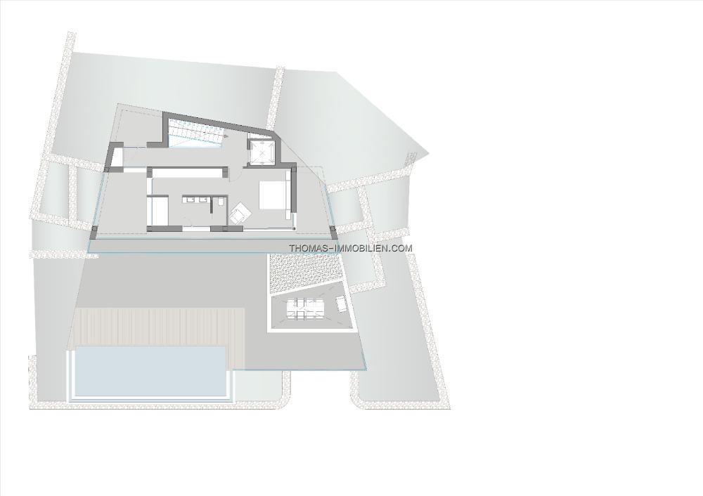 Das Erdgeschoss ist als offener Wohnbereich konzipiert, perfekt für das tägliche Leben und die Unterhaltung. Hier finden Sie ein großzügiges Wohn- und Esszimmer, das nahtlos an eine moderne, offene Küche mit Arbeits- und Kücheninsel anschließt. Außerdem gibt es ein Gäste-WC und einen praktischen Hauswirtschaftsraum. Große Glasschiebetüren bieten direkten Zugang zur einladenden Terrasse, die perfekt für die vielen Sonnentage ist. Die Terrasse bietet reichlich Platz für Sonnenliegen, einen großzügigen Esstisch und einen gemütlichen Sitzbereich neben dem beeindruckenden 31 m² großen Pool.
