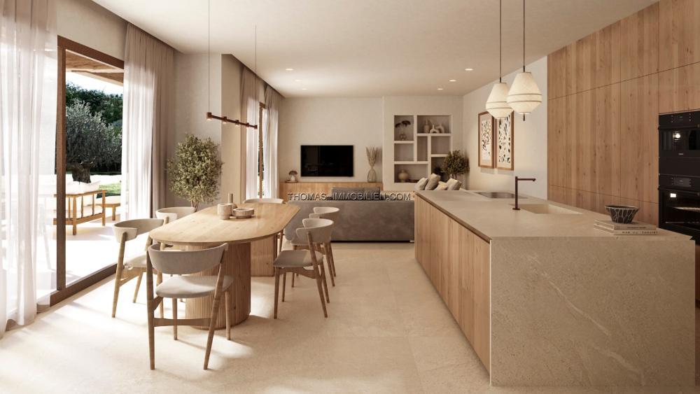 Nur 1 Kilometer entfernt befindet sich der Sandstrand von La Fustera, wo Sie auch verschiedene Restaurants und einen Supermarkt finden. Die Umgebung ist grün und ruhig, sodass Sie einen entspannten mediterranen Lebensstil genießen können.Jede ebenerdige Villa verfügt über ein geräumiges Wohn-Esszimmer mit offener Küche, die mit einer Kochinsel/Frühstücksbar ausgestattet ist. Die moderne Küche ist mit Bosch-Geräten oder vergleichbaren Geräten ausgestattet. Das Hauptschlafzimmer hat ein eigenes Bad, außerdem gibt es zwei komfortable Doppelzimmer, die sich ein zweites Badezimmer teilen.