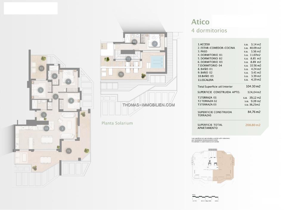 Die komfortablen und hellen Wohnungen bestehen aus einem offenen Wohn-Ess-Küchenbereich, 4 Schlafzimmern und 3 Badezimmern. Von den großen Terrassen aus können Sie die schöne Aussicht genießen. Die Küche ist mit Küchengeräten ausgestattet. Es gibt eine Klimaanlage (Kanäle), Handtuchheizkörper in den Badezimmern, Doppelverglasung und eine Sicherheitstür. Jede Wohnung verfügt über einen Parkplatz mit Vorinstallation für eine Ladestation für Elektrofahrzeuge.