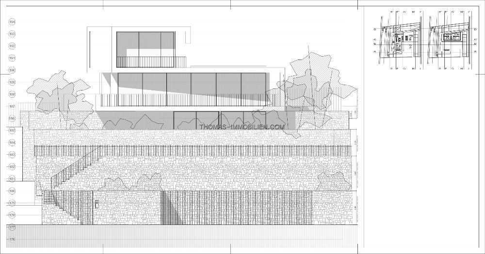 Der Zugang zum Haus erfolgt von der oberen Sackgasse aus über einen angenehmen Weg, der Ihnen die Möglichkeit gibt, die verschiedenen Merkmale dieses Projekts zu entdecken.