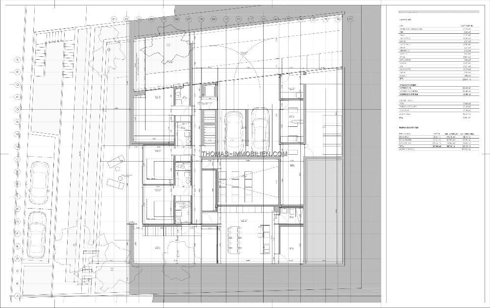 Vom Haupteingang aus gelangen Sie im Erdgeschoss direkt in die Halle, die Küche, Wohn- und Esszimmer in einem Bereich vereint. Von der Halle aus kann man über die Treppe oder den Aufzug in das Dachgeschoss und das Erdgeschoss gelangen. Der Wohnbereich und die Küche haben direkten Zugang zum Pool und zum Außenbereich mit Grill.
