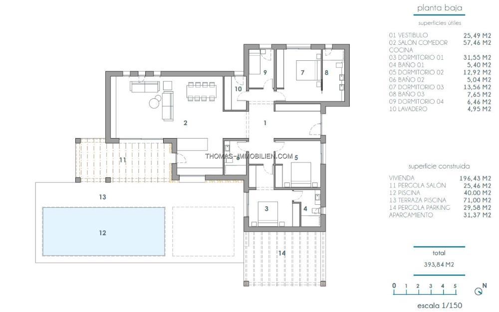 Diejenigen, die eine größere Villa bevorzugen, können ein Stockwerk aufsetzen lassen. Für diese Option siehe MT.H-797
