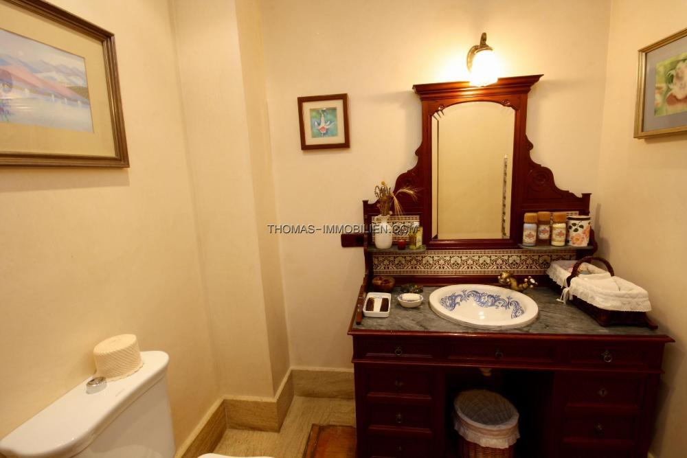 Im Erdgeschoss befinden sich die Personalunterkünfte mit einem Wasch- und Bügelraum, einer Speisekammer, einem Weinkeller, zwei Schlafzimmern und einem Badezimmer, alle mit separatem Eingang. Der Garten, der das Haus umgibt, verfügt über einen Swimmingpool, einen Essbereich, Terrassen mit überdachten Veranden, Springbrunnen und Bereiche zum Sitzen und Entspannen an der frischen Luft.