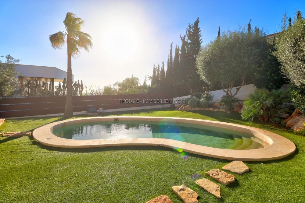 Die Architektur der Villa kombiniert zeitgenössisches Design mit klassischen mediterranen Elementen. Die hohen Decken, die großzügigen Fenster und der offene Grundriss schaffen eine helle und einladende Atmosphäre, die jeden Winkel dieses Hauses zu einem Vergnügen macht.