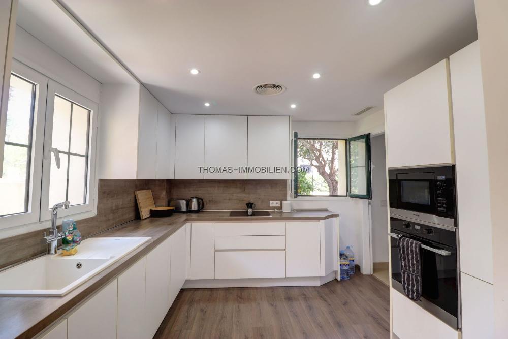 Das Design der Villa bietet eine funktionale und komfortable Wohnumgebung. Sie verfügt über ein offenes Wohn- und Esszimmer mit integrierter Küche, das einen hellen und geselligen Raum schafft. Das Haus umfasst vier Schlafzimmer (in den Unterlagen als 3 angegeben), von denen 3 über eigene en-suite Badezimmer verfügen, zusätzlich zu einer separaten Gästetoilette. Zwei der Schlafzimmer befinden sich im Erdgeschoss, eines davon mit direktem Zugang zum Garten und Pool. Die Immobilie ist mit Klimaanlage für ganzjährigen Komfort ausgestattet und verfügt über einen Kamin, der in den kühleren Monaten eine gemütliche Atmosphäre schafft.
