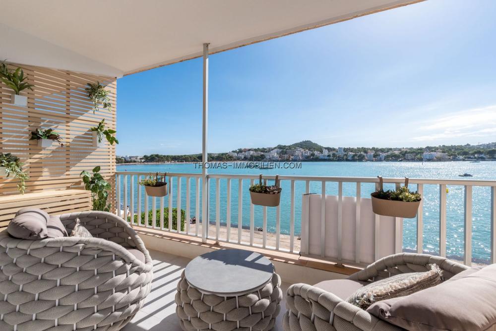 Entdecken Sie dieses wunderschön renovierte Apartment in erster Meereslinie in Santa Ponsa, das atemberaubende, direkte Ausblicke auf das Mittelmeer bietet. Diese komplett möblierte Immobilie ist sofort bezugsfertig oder als schlüsselfertige Mietinvestition geeignet.