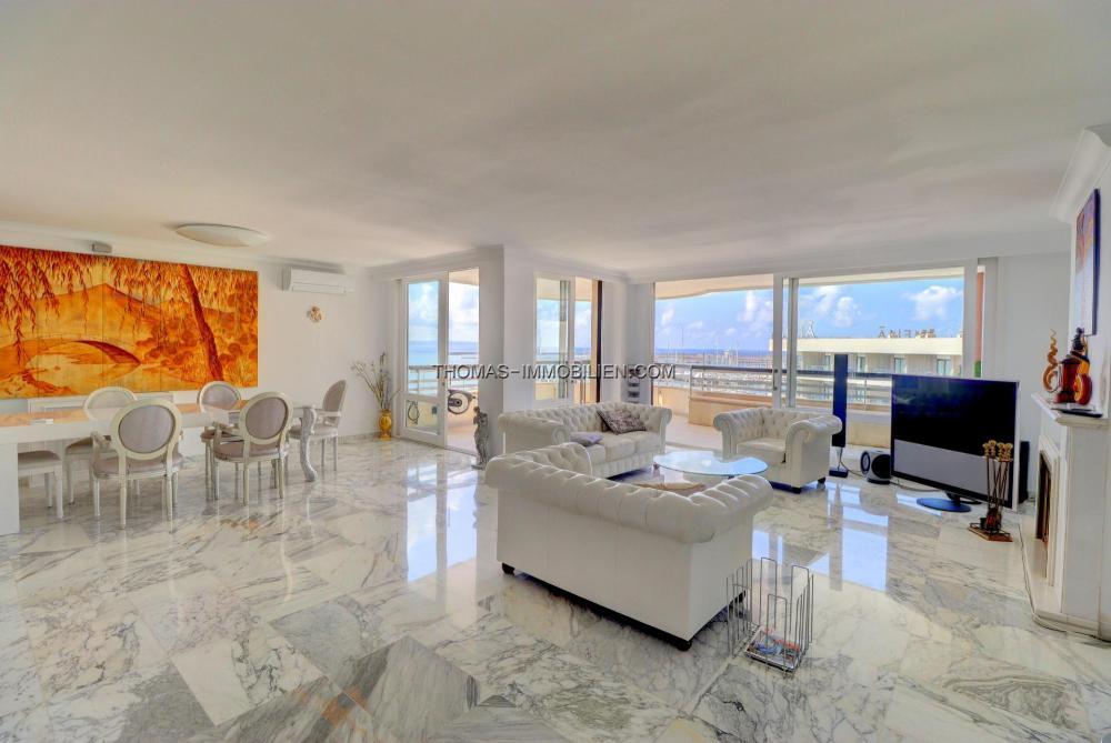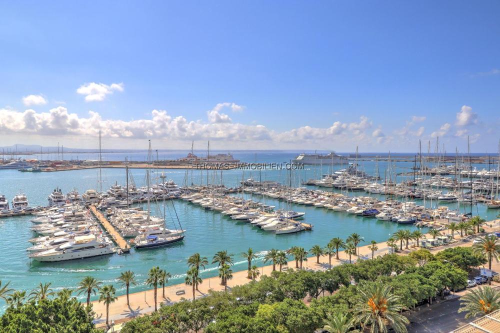 Vom Wohnbereich kommt man auf eine 25m2 grosse Terrasse. Herrlicher Blick über das Meer und die schöne Bucht von Palma mit südwestlicher Ausrichtung. Alle Annehmlichkeiten zu Fuss erreichbar. Lift und 2 Tiefgaragenplaetze sind inkludiert.