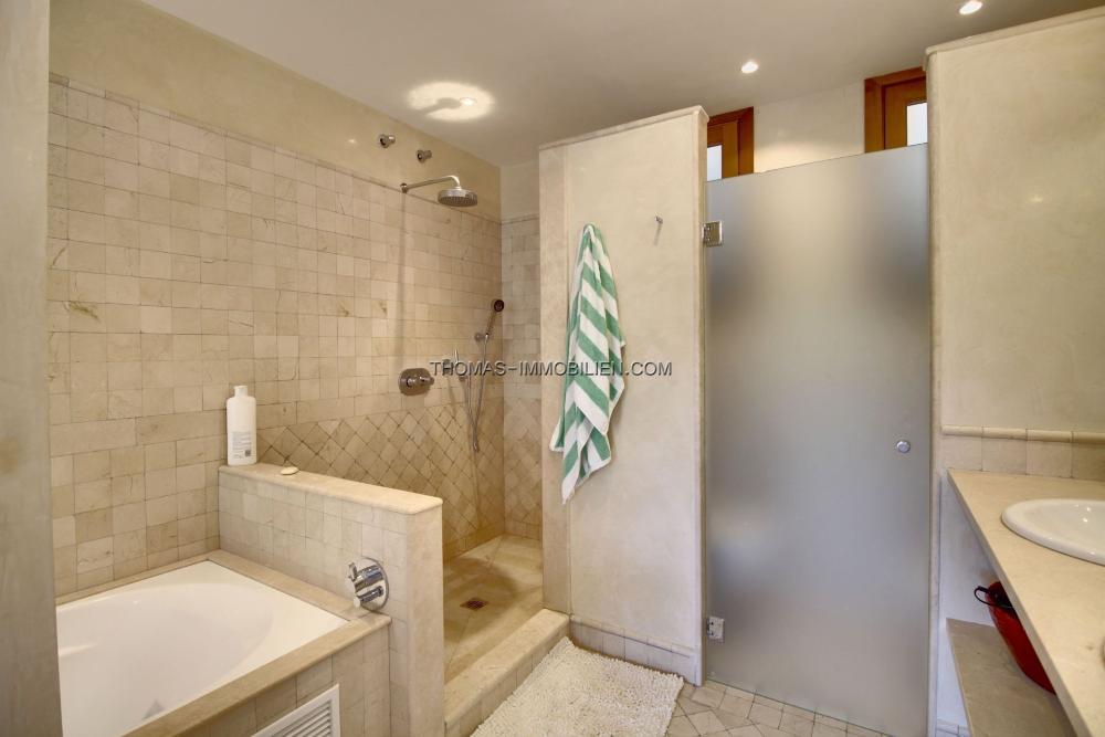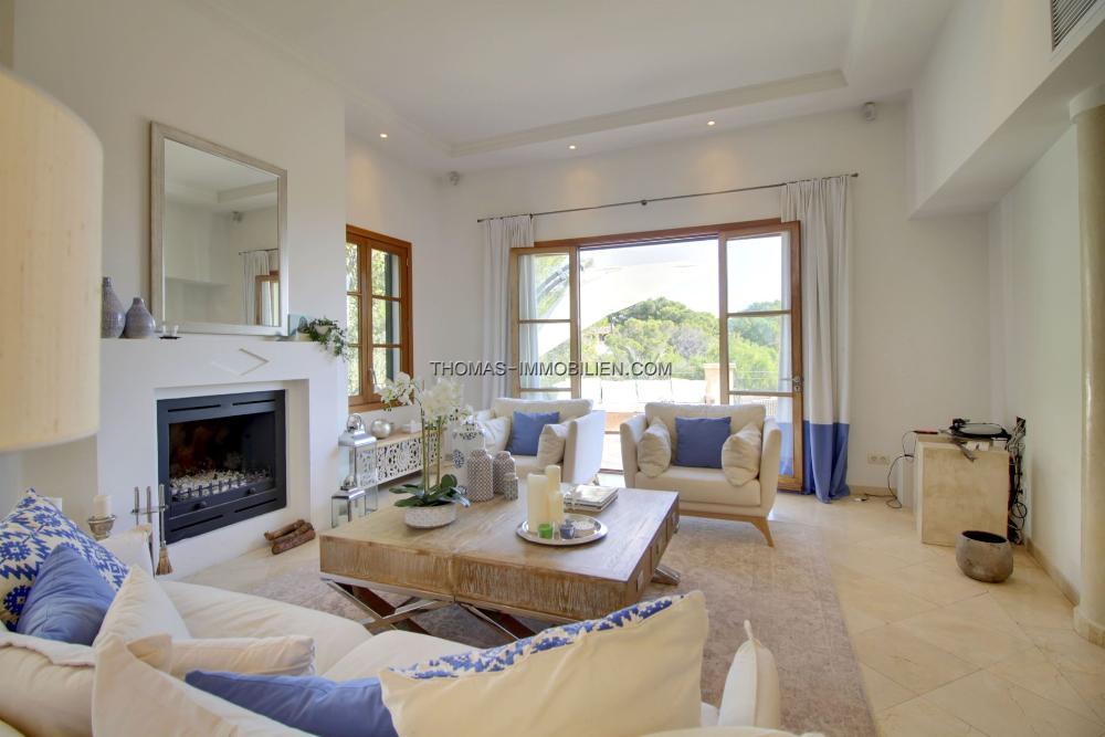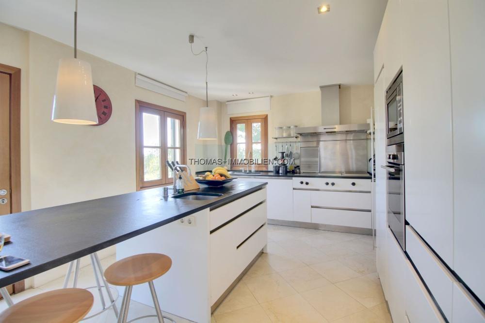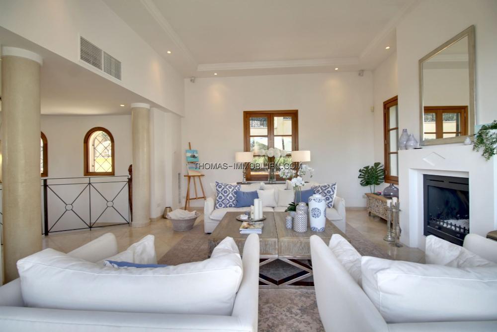 Auf der Eingangsebene betritt man einen großzügigen offenen Wohn- / Essbereich. Auf der linken Seite befindet sich ein komfortabler Sitz- / Unterhaltungsbereich, auf der rechten Seite eine voll ausgestattete Küche, ein Gäste-Garderobenraum und die Garage. Auf dieser Etage befindet sich eine offene Terrasse, die ideal ist, um Gäste zu unterhalten und den Fernblick auf das Meer zu genießen.Über eine große Innentreppe erreichen Sie das Erdgeschoss, wo sich 3 geräumige Doppelzimmer befinden, von denen 2 ein Badezimmer en Suite haben. Das dritte Schlafzimmer hat Zugang zu einem dritten Badezimmer auf der anderen Seite des Flurs. Alle Schlafzimmer haben Zugang zu einer schönen überdachten Terrasse sowie zur Hauptterrasse und zum Poolbereich.
