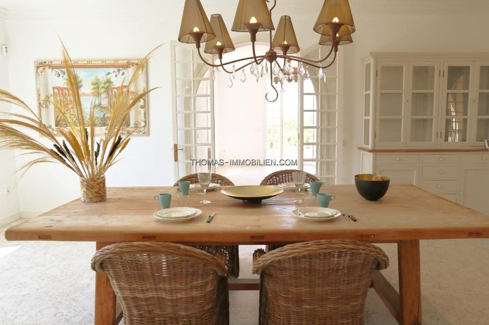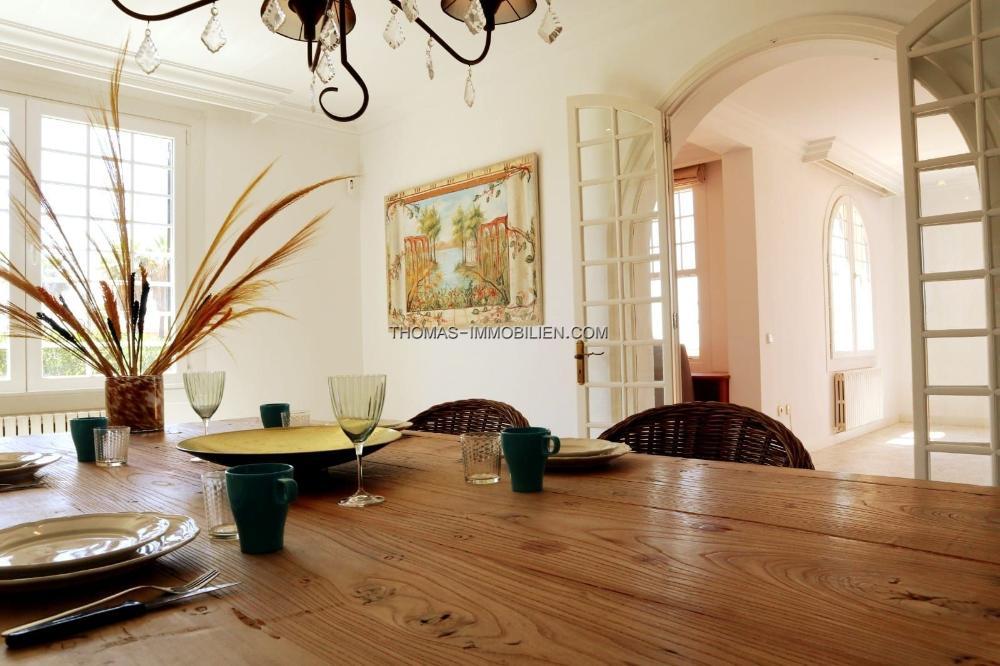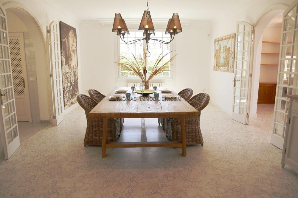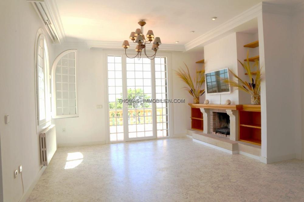 Wohnbereich:- Ein gepflegter Garten führt zum Eingang der Villa.- Geräumiges, helles Wohnzimmer mit Kamin, perfekt für Familientreffen oder Unterhaltung von Freunden.- Angrenzende, offene Küche mit Kamin, mit Blick auf den hinteren Garten.- Großes Esszimmer neben der Küche, ideal zum Empfangen.