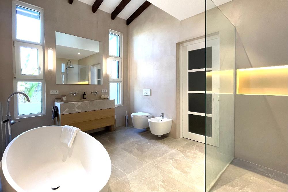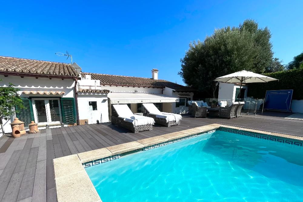 Diese geräumige und sehr private Villa hat einen großen Eingang und einen Parkplatz für mehrere Autos auf dem Grundstück. Die weitreichende Aussicht, der große Pool, der große Chill-out-Bereich und der überdachte Grillplatz machen sie zu einem spektakulären Ort zum Leben. Sie ist sehr funktionell und bietet 4 Schlafzimmer, 2 Bäder, einen großen Wohnbereich und eine separate Küche, alles auf einer Ebene. Die vielen großen Terrassen rund um die Villa bieten viel Flexibilität für das Leben im Innen- und Außenbereich rund um das Jahr. Ein ruhiger Ort, nur wenige Minuten von den Stränden und dem Zentrum von Palma entfernt. Zusätzliche Merkmale: Klimaanlage (warm/kalt). Das Internet, die Pool- und Gartenpflege sind im Mietpreis enthalten.