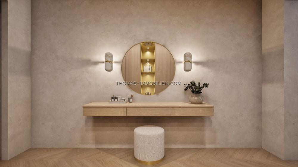 Die Immobilie wird nach den höchsten Standards fertiggestellt und umfasst Klimaanlage (warm/kalt), Fußbodenheizung, elektrische Tore, ein Sicherheitssystem, KNX-Smart-Home-Technologie, WC3-Sanitärkeramik, gebürstete Goldarmaturen, eine Designerküche, verstärkte Wärmedämmung und Porzellanböden. Das Haus wird wie in den CGI-Visualisierungen gezeigt geliefert, und weitere Details sind auf Anfrage erhältlich.