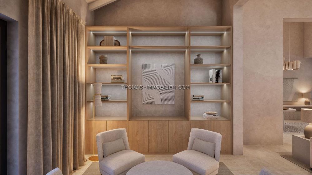Mit Eleganz und dezenter Luxus im Sinn entworfen, spiegelt die Villa den mediterranen Lebensstil in seiner besten Form wider. Eine neutrale Farbpalette kombiniert mit natürlichen Materialien, inspiriert von der lokalen Landschaft, während raffinierte Texturen und maßgeschneiderte Details eine warme und einladende Atmosphäre schaffen. Die Architektur erreicht einen nahtlosen Übergang zwischen Innen- und Außenbereichen, was das Haus ideal für sowohl ruhige Entspannung als auch stilvolles Unterhalten macht.