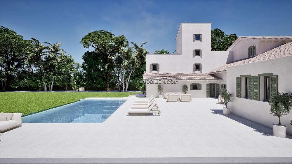 Die Immobilie wird nach den höchsten Standards fertiggestellt und umfasst Klimaanlage (warm/kalt), Fußbodenheizung, elektrische Tore, ein Sicherheitssystem, KNX-Smart-Home-Technologie, WC3-Sanitärkeramik, gebürstete Goldarmaturen, eine Designerküche, verstärkte Wärmedämmung und Porzellanböden. Das Haus wird wie in den CGI-Visualisierungen gezeigt geliefert, und weitere Details sind auf Anfrage erhältlich.
