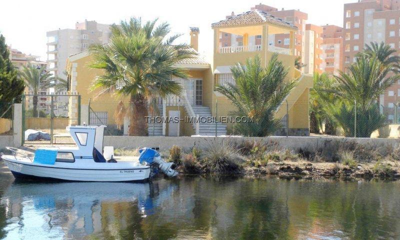 LUXUSVILLA MIT PRIVATEM PIER Zwischen zwei Meeren, dem Mar Menor und dem Mittelmeer, liegt diese wunderschöne Luxusvilla auf der Halbinsel La Manga (Murcia), mit einer der privilegiertesten Aussichten in der Umgebung (und nur wenige Meter vom Strand entfernt). privater Steg (für ein Boot bis 12 m), der den Zugang zum Meer durch ein System breiter Kanäle ermöglicht. Es liegt in der Gegend von Veneziola, mit unmittelbarer Anbindung an die natürlichen Inseln, den Golfplatz und den Yachthafen. Es ist ein Neubau mit hohen Qualitäten und Oberflächen, die typisch für ein Luxushaus sind. Mit einer bebauten Fläche von 465,32 m2 auf einem 1.361 m2 großen Grundstück verfügt es im Erdgeschoss über 3 sehr geräumige Doppelschlafzimmer und 2 Bäder, ein großes Wohnzimmer mit Kamin, ein separates Esszimmer, eine geräumige, unabhängige Hartholzküche und a große Speisekammer zum Aufbewahren von Lebensmitteln, Wäsche usw. Große Veranda vorne und hinten. Genießen Sie 2 sehr geräumige Terrassen und ein 72 m² großes Solarium mit Aussichtspunkt auf dem Dach des Gebäudes mit privilegiertem Panoramablick über das Mar Menor. Der Garten ist für eine einfache Wartung fertig und verfügt über einen privaten Pool. Doppelt verglaste Außenschreinerei und Doppelverschluss. Einbauschränke in allen Schlafzimmern. Keller / Garage von 239m2, ideal für die Installation von Fitnessstudios, Lagerhallen, Spielzimmern usw. Hinter dem Gebäude befindet sich ein privater Bootsanleger, der den Zugang zum Meer durch ein Kanalsystem ermöglicht. Die Strände sind nur wenige Meter vom Haus entfernt.