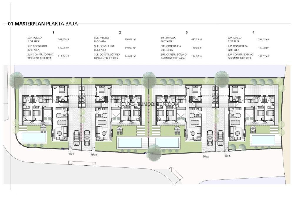 Dieses exklusive Projekt besteht aus 4 unabhängigen Villen mit 3 Schlafzimmern und 3 Bädern auf einer Etage, mit privatem Schwimmbad 3 x 7, offenen Keller mit Licht und Belüftung durch einen englischen Patio und große Sonnenterrasse auf einem Grundstück von 400 m2 ca. Die Eigenschaften haben voll ausgestattete Küchen und Bäder und Vorinstallation von Klimaanlagen Kanäle.