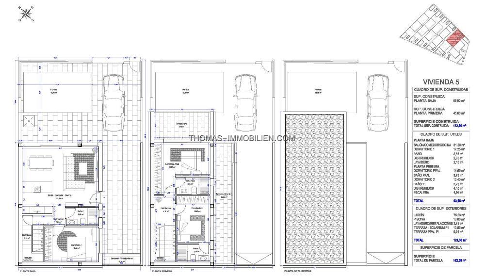 Willkommen in der zweiten Phase eines exklusiven Bauvorhabens in San Pedro del Pinatar, wo Modernität auf Funktionalität trifft. Diese 12 Doppelhaushälften sind mit einem minimalistischen Design und hochwertigen Oberflächen ausgestattet und bieten ein anspruchsvolles und stilvolles Wohnerlebnis. Jede Villa verfügt über 3 geräumige Schlafzimmer, 3 Bäder, einen privaten Pool, Terrassen und einen privaten Garten. Dies ist der perfekte Zufluchtsort für alle, die Ruhe, Privatsphäre und unvergleichlichen Komfort suchen.