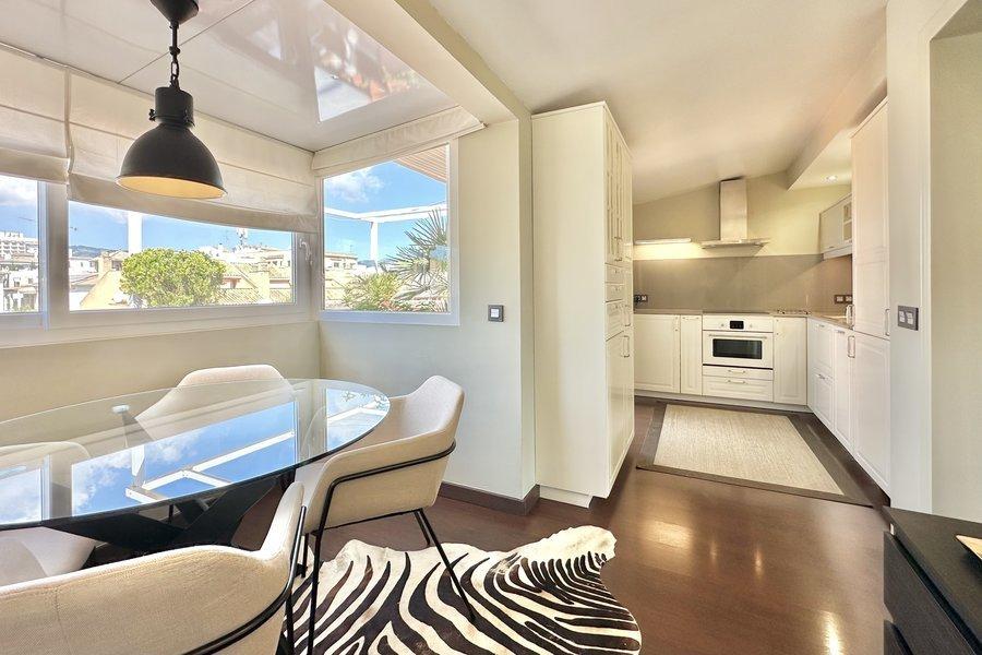 Charmantes Penthouse mit toller Aussicht in Son Armadams-Dieses schöne und helle Penthouse von ca. 75 qm mit zwei Terrassen liegt in der ruhigen Gegend von Son Armadams, nur wenige Gehminuten von den berühmten Vierteln Santa Catalina, Paseo Marítimo und El Terreno entfernt. Das Anwesen besteht aus einem geräumigen Wohnzimmer mit direktem Zugang zu einer schönen Terrasse von ca. 10 qm, separate Küche mit Essbereich, eine weitere wunderschöne Terrasse von ca. 15 qm, Doppelschlafzimmer mit Einbauschrank und ein Badezimmer. Es verfügt auch über Klimaanlage, elektrische Heizkörper, Entkalkungsanlage im ganzen Apartment und Osmosisanlage in der Küche und eine sehr ruhige Wohngegend, nur 5 Minuten vom Paseio Maritimo entfernt.