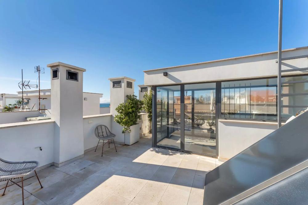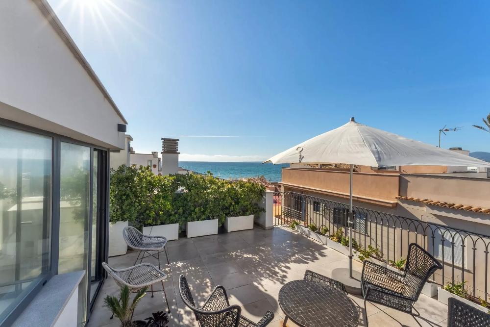 Hochwertiges Stadthaus mit Pool in Molinar-Verfügbar für temporäre Anmietung. Dieses einzigartige Haus, bietet komfortables Wohnen das ganze Jahr über oder als Zweitwohnsitz. In bester Lage am Meer in Molinar, nur wenige Schritte von der Strandpromenade entfernt, kombiniert es modernes Design mit traditionellen Elementen für eine einladende Atmosphäre. Im Erdgeschoss befindet sich die hochwertige Cocinart-Küche mit Geräten von Miele, Smeg und Siemens, offen verbunden mit dem Wohnzimmer. Große Glasschiebetüren führen zu einer Terrasse und einem 60 qm großen Garten mit solarbeheiztem Pool. Zudem gibt es ein Gäste-WC und einen Kamin. Im Obergeschoss sind drei Schlafzimmer, zwei Bäder (eines en-suite) und zwei Balkone mit Meerblick. Die 62 qm große Dachterrasse bietet spektakulären Meerblick. Das Untergeschoss verfügt über zwei weitere Schlafzimmer, ein Badezimmer, eine Dampfsauna (Effegibi), eine Waschküche und einen Abstellraum. Ein Glasabschnitt erlaubt den Blick ins Poolwasser. Zwei private Parkplätze im Nachbargebäude sind ebenfalls enthalten.