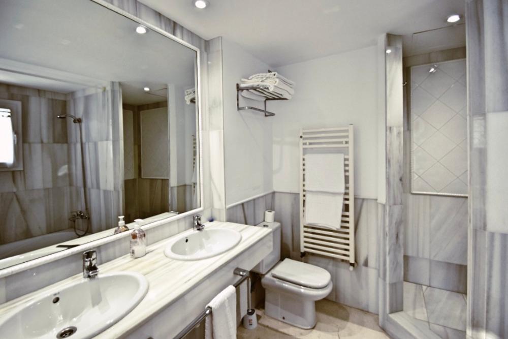 Dieses moderne und helle Apartment befindet sich in Bendinat, in einer sehr gepflegten Wohnanlage mit Pförtner, Gemeinschaftsgärten und mehreren Pools. Die Wohnung teilt sich auf in ein Doppelschlafzimmer, ein Schlafzimmer mit zwei Einzelbetten, zwei Badezimmer, Wohn- und Essbereich mit Küche sowie eine Terrasse mit Blick auf den Golfplatz von Bendinat, die gepflegte Gartenanlage und Pool. Die Wohnung ist mit allen Annehmlichkeiten ausgestattet, wie Klimaanlage und Heizung, Spül- und Waschmaschine und sofort bezugsfertig. In der Näherem Umgebung befinden sich mehrere Strände, Einkaufsmöglichkeiten und Restaurants und der Golfplatz direkt nebenan. Ebenfalls gibt es einen Garagenstellplatz.