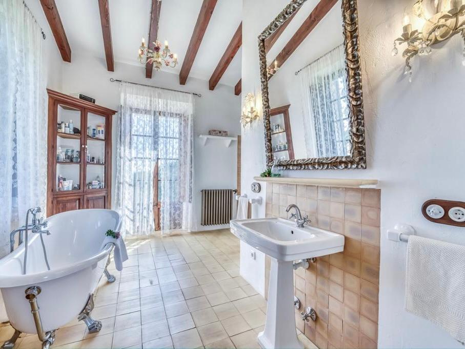 Die Villa kann möbliert oder unmöbliert gemietet werden. Fantastische Villa aus Naturstein mit 400 qm Wohnfläche auf einem 15.000 qm großen Grundstück, am Ortsrand von Binissalem gelegen. Die Immobilie ist sehr hochwertig und traditionell eingerichtet. Der großzügige Eingangsbereich auf zwei Ebenen führt in die voll ausgestattete, große Küche mit angrenzendem Esszimmer und Wohnbereich. Auf der gleichen Ebene befinden sich ein Schlafzimmer und ein Badezimmer mit großer Dusche. Eine galerieartige Treppe führt zu drei weiteren geräumigen Doppelschlafzimmern und zwei Badezimmern, von denen eines ein eigenes Bad hat. Der Pool mit Blick in die Natur, der große und moderne Grill, der gepflegte Rasen und die überdachte Terrasse runden dieses außergewöhnliche Anwesen ab. Der mittelalterliche Ortskern mit Einkaufsmöglichkeiten sowie zahlreichen Bars und Restaurants ist in wenigen Gehminuten zu erreichen.