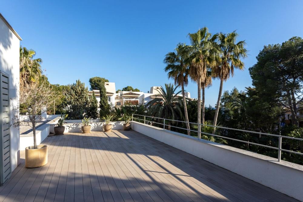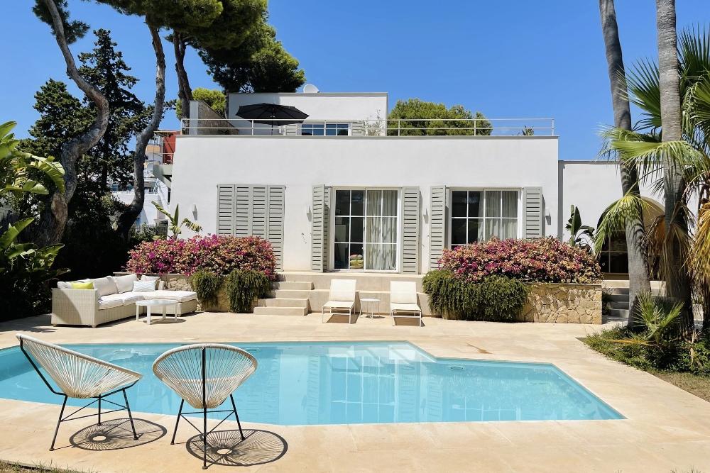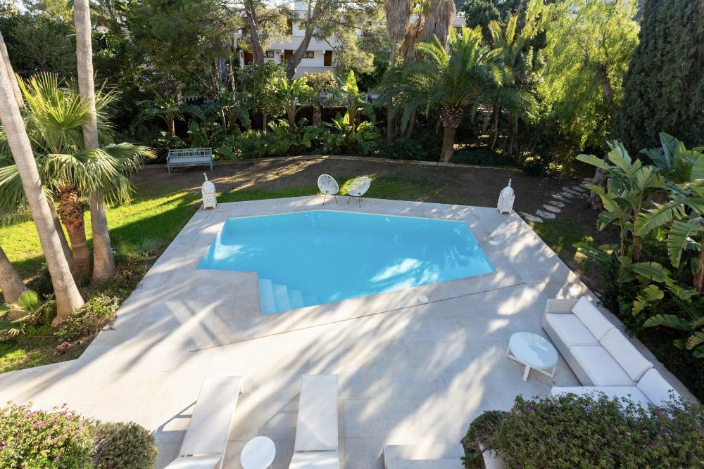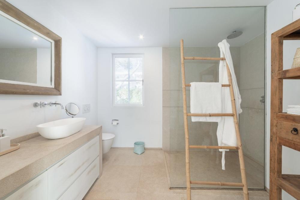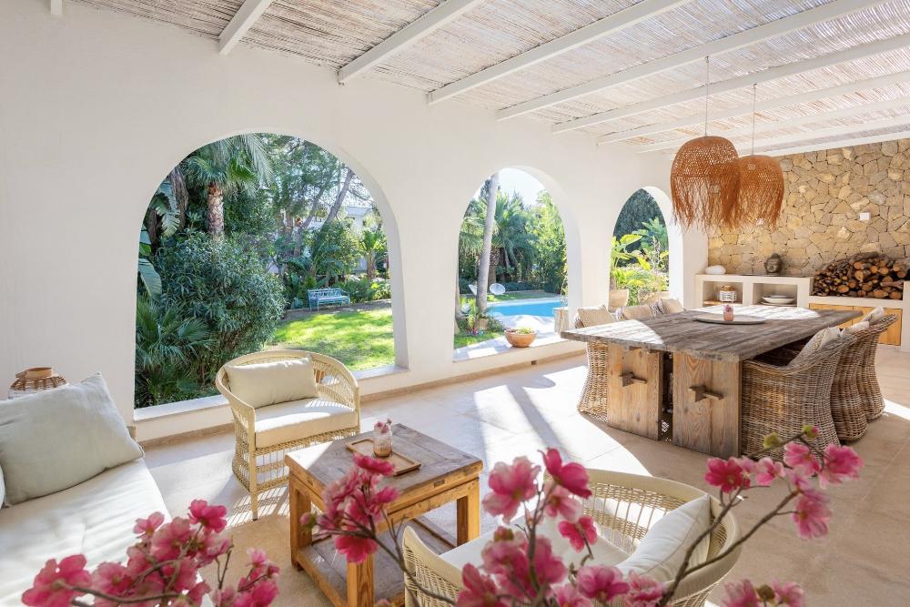 Dieses wunderschöne, sehr moderne und luxuriöse Haus von ca. 218 qm ist in eine offene Küche mit einem großzügigen Ess- und Wohnbereich aufgeteilt. Der Flur führt zu 3 Schlafzimmern, einem Hauptschlafzimmer mit Bad en-suite und einem weiteren separaten Gästezimmer mit Gäste-WC. Die schönen Natursteinböden, die glamourösen Möbel und das Dekor schaffen ein dauerhaftes Urlaubsgefühl der Entspannung und guten Energie. Von allen Schlafzimmern und Teilen des Wohnbereichs haben Sie Zugang zum Garten, der mit schönen wilden Bananen und Palmen bepflanzt ist und zum 30 qm großen Salzwasserpool führt, in dem Sie in den wärmeren Sommermonaten ein erfrischendes Bad nehmen können. Es gibt auch eine überdachte Terrasse mit einem Sitzbereich und einem großen und schönen Esstisch aus Holz, wo Sie das ganze Jahr über im Freien speisen können.\nDas Haus verfügt über ein separates Gästestudio mit Bad, das über eine separate Außentreppe zu erreichen ist. Es gibt eine große und sonnige Terrasse von über 40 qm, auf der Sie die Sonne genießen oder sogar Yoga bei Sonnenuntergang praktizieren können. Das Haus ist komplett ausgestattet für einen komfortablen Aufenthalt mit zentraler Klimaanlage (warm/kalt), einem gemütlichen Kamin, Alarmanlage und es gibt zwei Parkplätze mit überdachten und nicht überdachten Parkplätzen. In der Nähe Annehmlichkeiten, Restaurants und schöne Strände sind zu Fuß erreichbar.