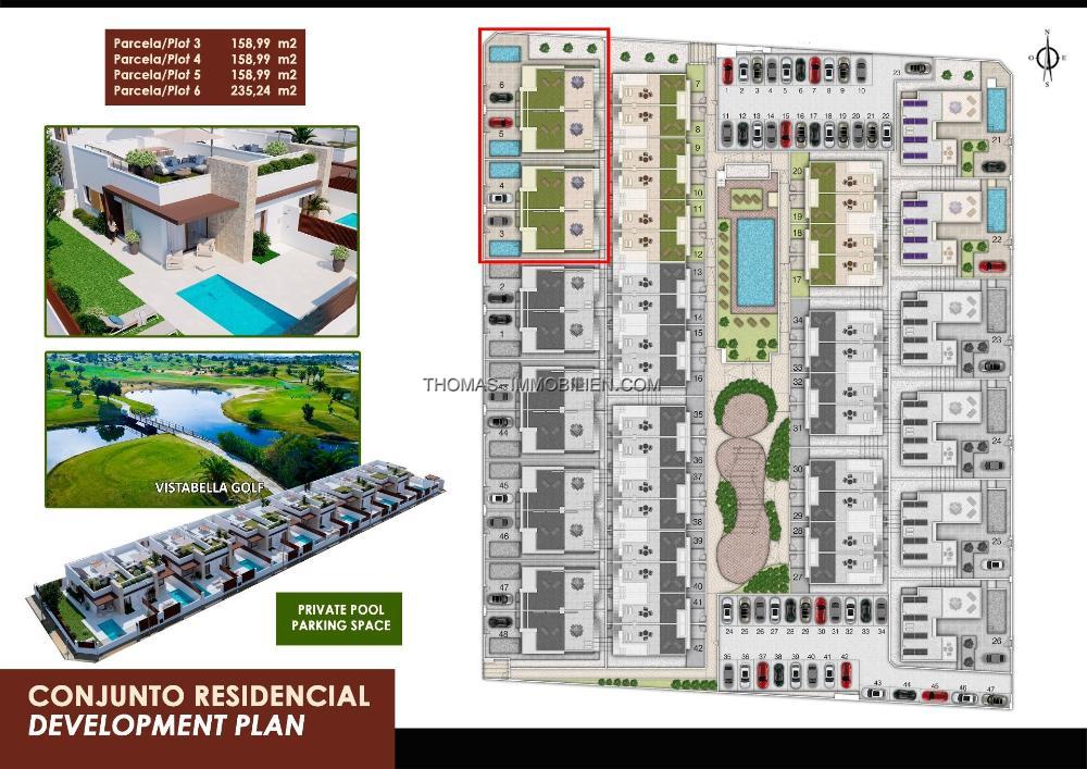 6 freistehende Villen mit 4 Schlafzimmern, 3 Bädern und 1 Gäste-WC.