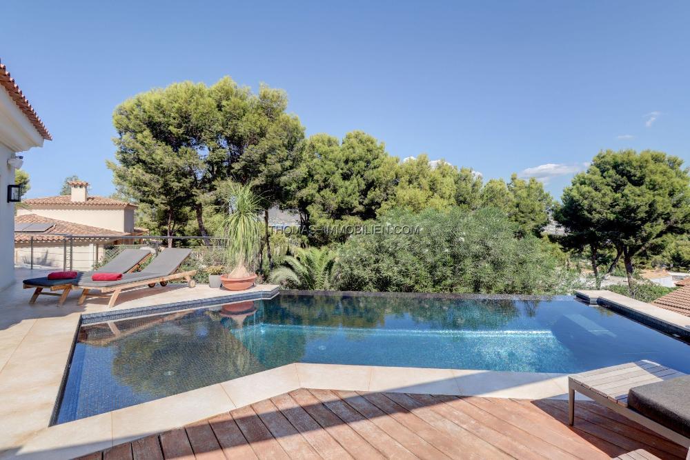 Die Immobilie wurde geschmackvoll eingerichtet und die Designmöbel sind im Preis inbegriffen. Sie haben einen schönen Meerblick auf die Bucht von Santa Ponsa und auf die Berge