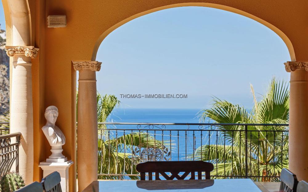Das Hauptgebäude mit Grill-/Poolhaus und Sauna, Gästehaus, Serviceapartment und Garagen usw. Das ca. 805 m² große Anwesen mit mehreren hundert Quadratmetern Terrassen, teilweise mit Holzpergolen ausgestattet, liegt auf einem ca. 2.400 m² großen Hanggrundstück und verfügt über einen riesigen beheizten Pool. Die Südausrichtung der Gebäude und der Terrasse garantiert Sonnenschein von 9 Uhr morgens bis Sonnenuntergang und einen Panoramablick vom Felsen La Mola über das offene Meer bis hin zur Insel Dragonera.
