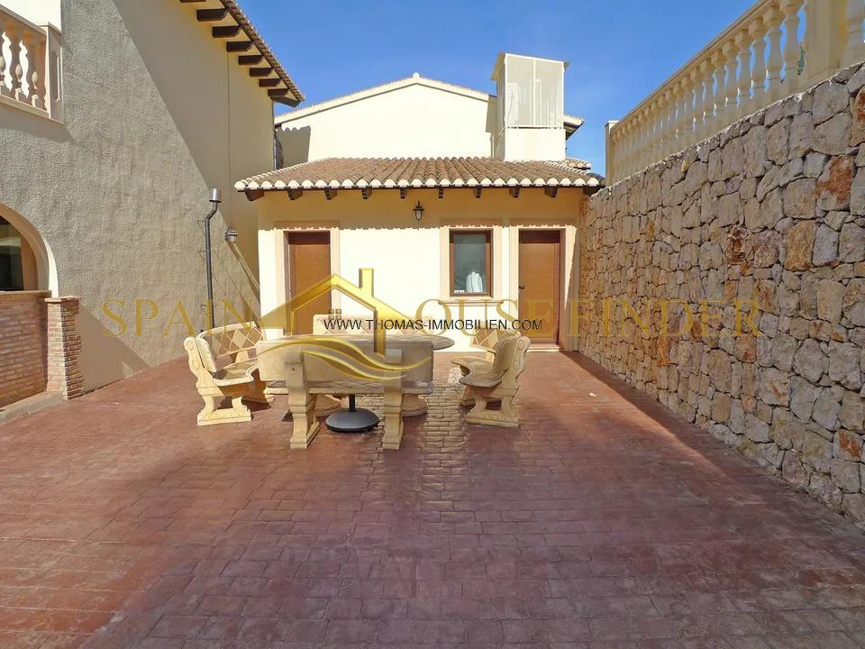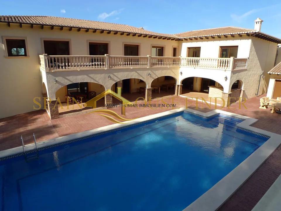 Ländliche Steinfinca in den Hügeln von Lliber mit fantastischer Privatsphäre und Ruhe. Diese Luxus-Immobilie vermittelt Ihnen ein Gefühl von Raum, Ruhe und Opulenz. Es hat luftige Räume mit einer großzügigen Aufteilung und viel natürlichem Licht. 80m² groß ist der Unterhaltungs- Wohnraum. Er verfügt über eine voll ausgestattete Bar und ist der perfekte Ort, um seine Freizeit zu verbringen. Hier kann man Gäste bewirten oder vor dem Großbildfernseher entspannen. Der zweite von drei großen, beeindruckenden Empfangsräumen ist das formelle Wohnzimmer mit einem fabelhaften Granit Kamin. Es ist ein wundervoller Raum, um Gäste zu unterhalten und große Partys zu veranstalten.11×5m² groß ist die offene Küche im italienischen Stil mit Essbereich. Im Haupthaus befinden sich sechs luxuriös ausgestattete Schlafzimmer, fünf davon mit eigenem Bad und zwei mit eigenem gemütlichen Wohnzimmer. Zentralheizung und Klimaanlage im Ganzen Haupthaus und einen 20.000 Liter Wassertank, Outdoor Badezimmer und Waschküche. Darüber hinaus gibt es ein eigenständiges Gäste Apartment mit zwei Schlafzimmern über der Garage. ( geeignet für 3-5 Autos ) Wenn Sie sich vor der Mittagssonne schützen möchten, können Sie auf der großen überdachten Terrasse mit Bar Schatten suchen und in dem schönen Swimmingpool imResort-Stil, 15×5m² abtauchen. Diese außergewöhnliche Villa hat alles, was sie zu einem wunderbaren Familienhaus macht. Sie bietet aber auch unbegrenzte Möglichkeiten, ein Unternehmen zu gründen. Es könnte leicht in ein luxuriöses Bed & Breakfast oder ein exklusives Boutique-Hotel, ein Wellness-Center oder in einen Ort für Hochzeiten umgewandelt werden. Für den anspruchsvollen Käufer ist dies eine einzigartige Gelegenheit, einen luxuriösen, ländlichen Rückzugsort zu erwerben. Die Lage ist atemberaubend, umgeben von immergrünen Bäumen und rustikaler Landschaft. Es ist wirklich eine Oase des Friedens, mit viel Privatsphäre und Ruhe. Doch nur eine kurze Autofahrt von den Küstenstädten und wunderschönen Sand Stränden der Costa Blanca entfernt. Auch die Flughäfen von Alicante und Valencia sind in weniger als einer Stunde zu erreichen.