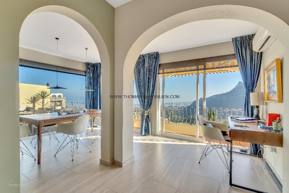 Diese großzügige und elegante Villa mit herrlichem freien Blick auf das Mittelmeer und den Naturpark Sagaria befindet sich in einer der beliebtesten Urbanisationen der Costa Blanca – am Monte Pego. Das Anwesen befindet sich auf einem Doppelgrundstück und hat eine Süd-West-Ausrichtung und liegt in einer Sackgasse, somit ist Ruhe garantiert. Das Anwesen ist in ausgezeichnetem Zustand und ist auf 3 Etagen verteilt. Die Aufteilung dieses geräumigen Anwesens ermöglicht es Ihnen ein Haus zu genießen, welches sowohl eine private Hauptebene für Sie bietet, als auch 2 separate Bereich für Ihre Familie und Ihre Freunde. Das innere dieser charmanten Villa, mit Ihrem einzigartigen Design wurde mit großer Sorgfalt und Ergonomie gestaltet - jeder Raum wird genutzt, damit Sie den mediterranen Lebensstil jeden Tag genießen können. Im Erdgeschoss betreten Sie eine geräumige Eingangshalle mit einer Garderobe mit viel Stauraum. Von hier aus betritt man den lichtdurchfluteten, offenen Wohn - und Esszimmer mit Kamin und spektakulären Blick auf das Mittelmeer und direktem Zugang auf eine schöne Sonnenterasse. Zusätzlich hat die Villa den Komfort eines zweiten sehr gemütlichen Fernsehzimmer / Leseraum / Ruhe Oase.